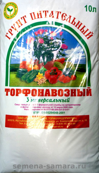 Малоконцентрированный слабокислый питательный грунт, произведенный из прокомпостированной смеси торфа и навоза крупного рогатого скота.
