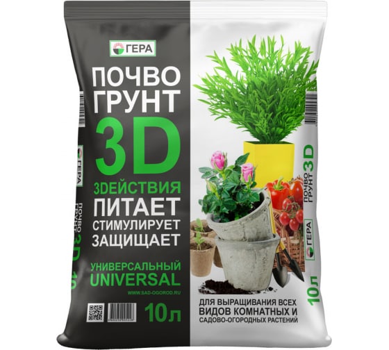 Почвогрунт ГЕРА 3D+ Универсальный 10 л 8...
