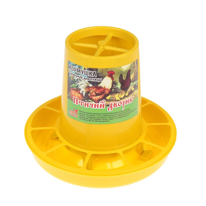 Кормушка используется для кормления птицы - кур, гусей, уток, индюков при напольном содержании и содержании в клетках. Бункерная кормушка позволяет создать запас корма для птицы, по мере его поедания он автоматически поступает из бункера в лоток. Кормушка выполнена из прочного высококачественного пластика.